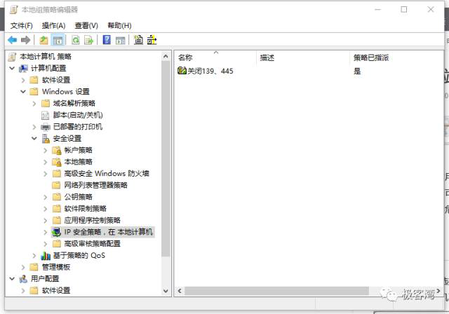 20、回到组策略编辑器,右键单击右侧刚才创建的“封禁端口”,在右键菜单当中选择分配,就成功关闭了445端口。