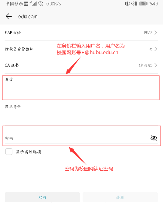 365官网师生在访问eduroam联盟的高校或学术组织时,用户名为:学号或工号+@hubu.edu.cn(认证时请务必添加“@hubu.edu.cn”后缀,否则将不能正常使用,例如:20040000@hubu.edu.cn)。密码为:校园网认证密码(请妥善保管,切勿外传)。