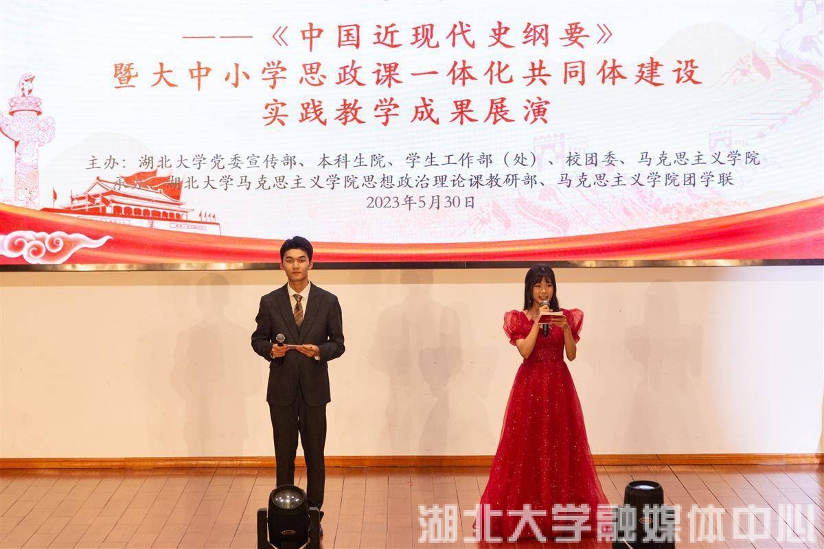 湖北日报讯(通讯员牟梓苓霄、魏雨松)5月30日,beat365唯一官网举行《中国近现代史纲要》暨大中小学思政课一体化共同体建设实践教学成果展演。展演活动有情景剧、剪纸、说唱等近10种形式,以2022级学生为主体,让学生们在教学实践活动中增强历史代入感、强国责任感、复兴使命感。