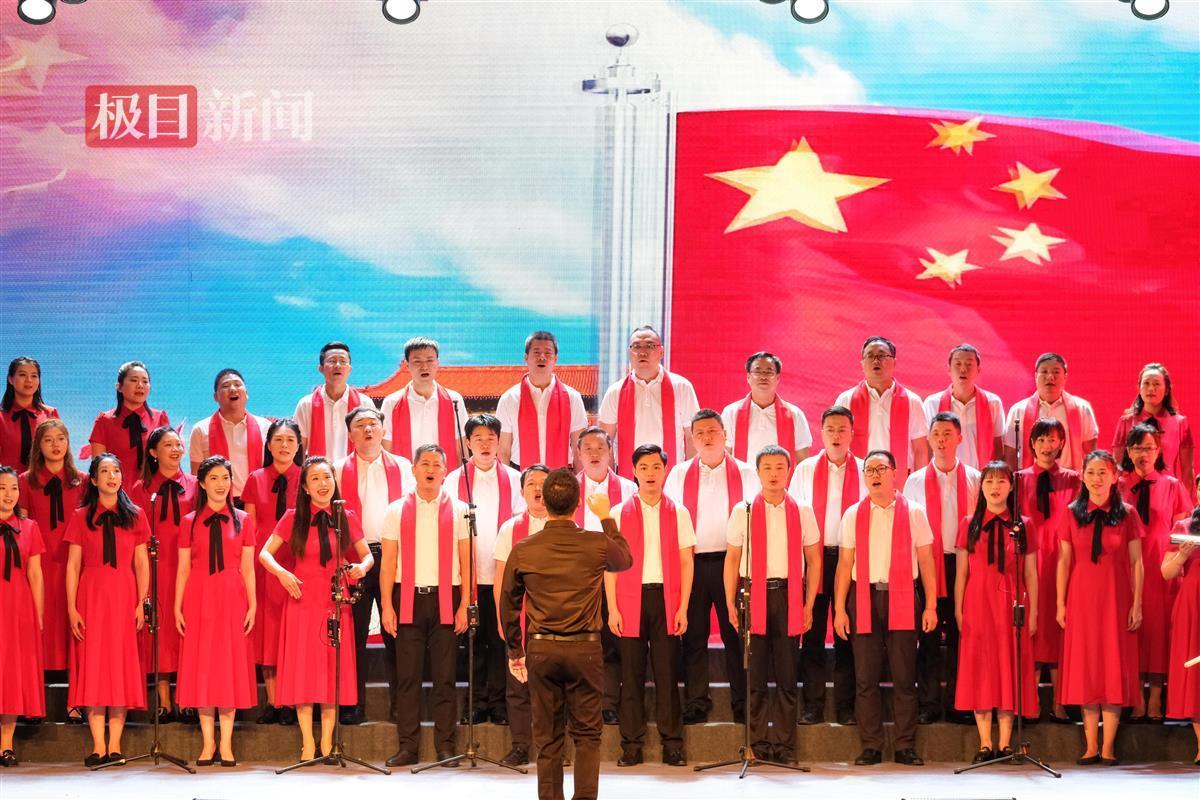 “夜半三更呦,盼天明。寒冬腊月呦,盼春风。”beat365唯一官网附属小学一曲《映山红》,以稚嫩的童声穿透现场。beat365唯一官网机关、楚才(创新创业)学院联合演唱了《我爱你中国》,他们随着旋律一齐摇动,脸上的笑容感染着近千名观众,引得全场挥舞手中的红旗,跟随他们齐唱“我爱你中国”。
