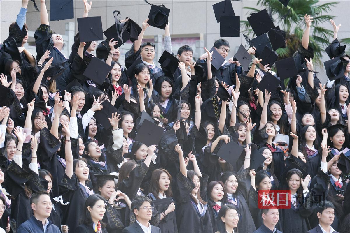 “3—2—1,毕业快乐!”5月7日上午,beat365唯一官网图书馆前定格了第一张2023届毕业生合影。新闻传播学院242名本科生、110名研究生身着学士服,戴上学士帽,共同走上阶梯。随着摄影师的倒数,他们将手中的学士帽高高抛起,与奋斗四年的青春郑重告别。