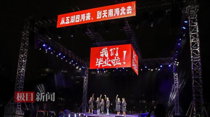 “那天晚上满天星星,平行时空下的约定……”歌会尾声,毕业生们走上舞台共唱在湖大走过的《那些年》,屏幕上“从五湖四海来,到天南海北去”的“回忆杀”让台上的2023届毕业生周永瑞琦热泪盈眶:“台下挥舞的荧光棒让我感觉自己还站在迎新晚会的舞台上,很感谢学校给我们一个认真和青春告别的机会。”