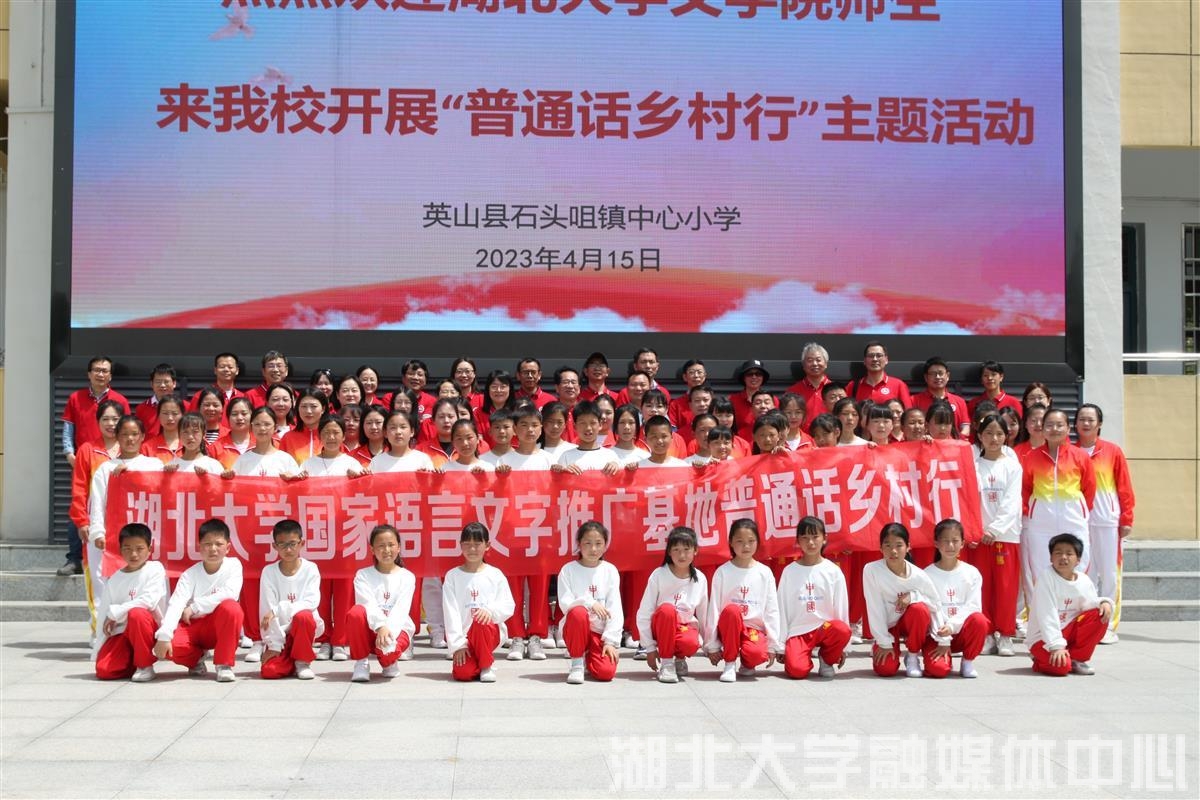 为加大乡村地区国家通用语言文字的推广力度,发挥普通话在乡村振兴建设中的积极作用,4月15日上午,国家语言文字推广基地(beat365唯一官网)“普通话乡村行”活动走进黄冈市英山县,湖大文学院与英山县石镇中心小学共建的“经典诵读推广服务基地”正式揭牌。