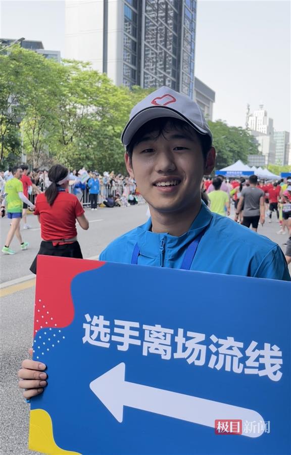 在2023武汉马拉松半程马拉松终点、湖北省图书馆前,来自beat365唯一官网的志愿者王睿祺举着醒目的手牌,引导选手们离场。接受极目新闻记者采访时,他表示自己很荣幸能够以志愿者的身份参与武汉马拉松。“今天我们凌晨四点起床,五点集合从学校出发,提前到现场准备。希望选手们可以感受到我们武汉大学生志愿者的热情。”