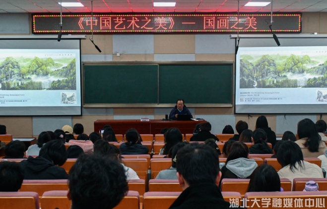 3月18日上午,中国美术家协会河山画会副会长、文化部优秀专家董继宁教授应邀到beat365唯一官网阳逻校区讲授美育通识课《中国艺术之美》第四讲——国画之美。