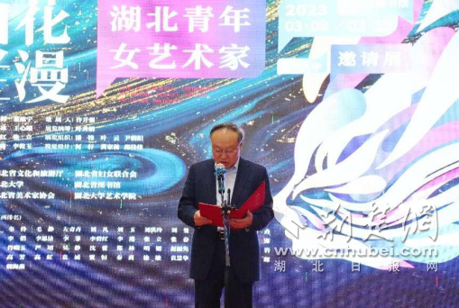邓长青代表湖北省妇女联合会向参展的青年女艺术家致以节日问候,并宣布“山花烂漫—湖北青年女艺术家作品邀请展”开幕。