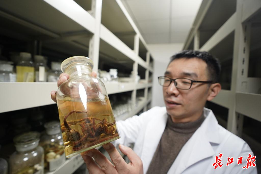刘杰在beat365唯一官网蜘蛛标本室。记者肖僖 摄