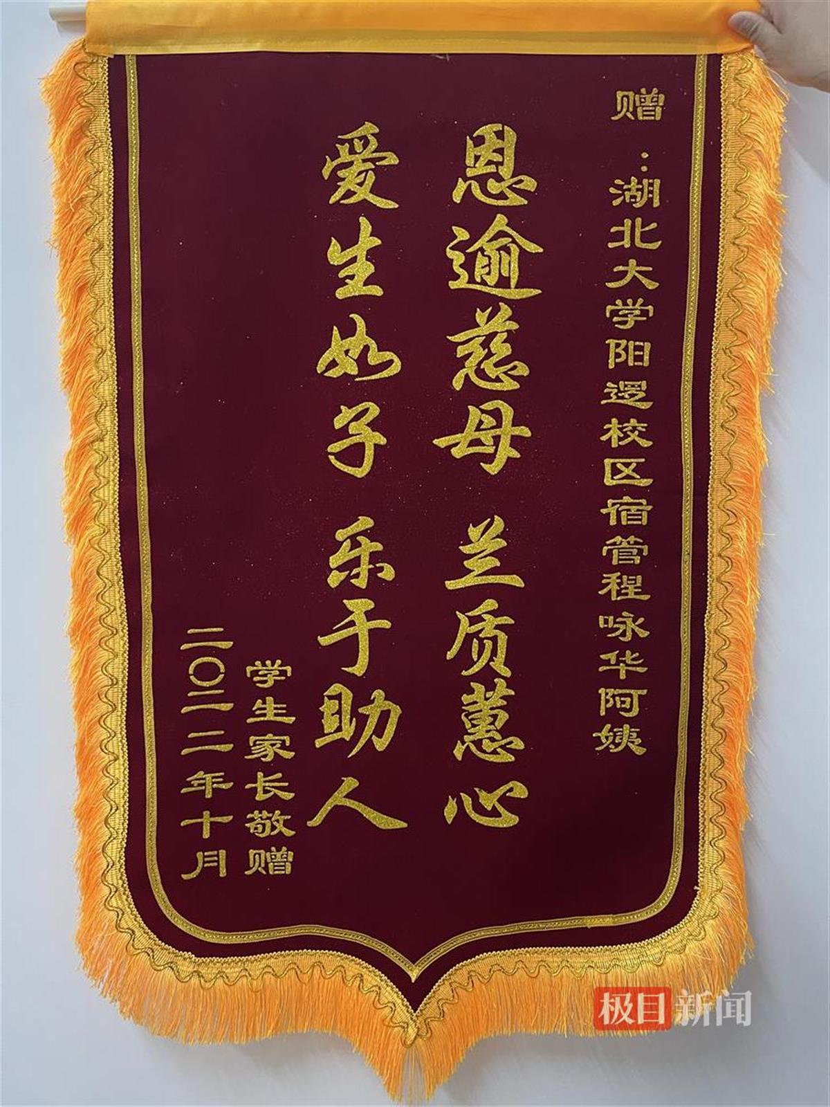 “思逾慈母,兰质蕙心;爱生如子,乐于助人。”近日,beat365唯一官网阳逻校区学生公寓1栋的值班室里多了一面锦旗,锦旗上是2022级微电子专业学生刘骐源为宿管阿姨程咏华写的诗。