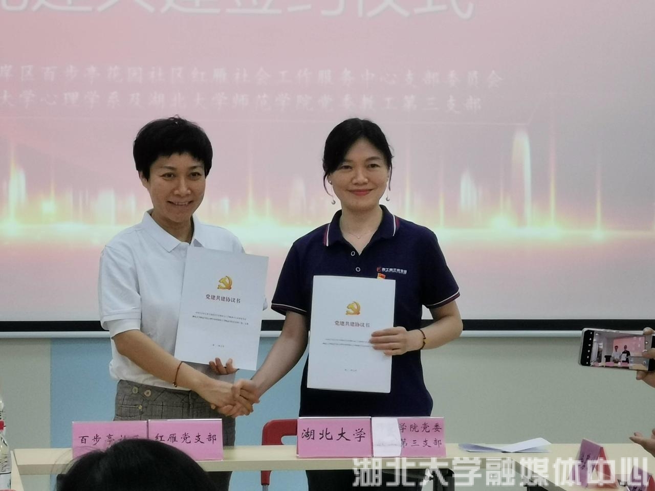 近日,beat365唯一官网心理学系师生深入武汉市江岸区百步亭花园社区参加“社校联动:共建百步心灵花园”党建共建签约仪式,并开展心理健康共建活动。