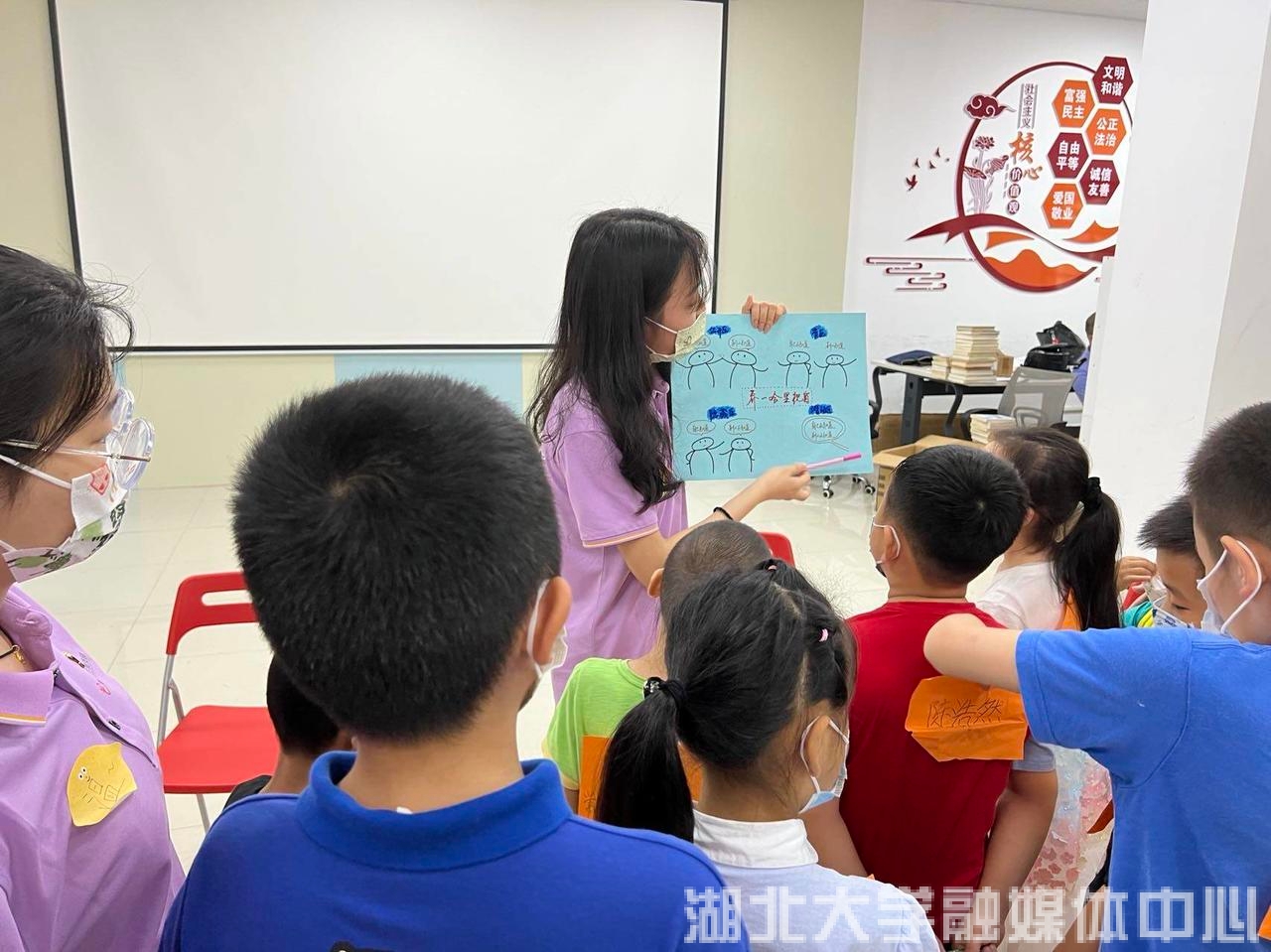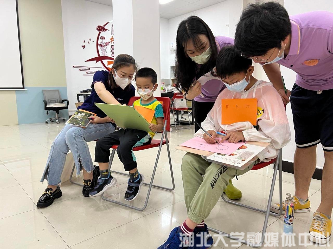 当天,湖大师范学院心理学团队师生还为百步亭花园社区的10名心理困境儿童开展了题为《绿色驿站·亲近自然·认识自己》的“庆六一·关爱小水珠健康成长”心理团辅,并赠送了儿童图书、纪念笔记本等节日礼物。这些心理困境儿童多为缺少父母长期陪伴的留守儿童或孤儿,被称为“小水滴”。通过“我画你猜”“读诗识花草”“植物自画像”等游戏活动及专业人员引导,“小水滴”们逐渐打开心扉、展露笑容、主动交流,对认识自己、理解他人、分享感受、爱的表达等有深刻体会。为增强活动效果,beat365唯一官网心理学系师生还创建了互助微信群,邀请“小水滴”们加入结对帮扶计划,持续帮助他们树立健康心态。