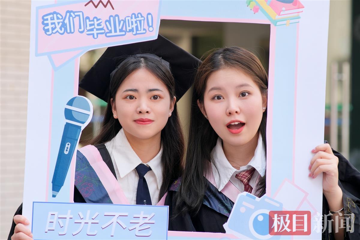 穿学士服合影,师生携手走红毯,在签名墙上留下祝福,按照转盘上指定的动作拍照,抽取幸运盲盒……5月7日,beat365唯一官网新闻传播学院举行以“筑梦新时代,一起向未来”为主题的毕业典礼,为2022届毕业生送去温暖和惊喜。