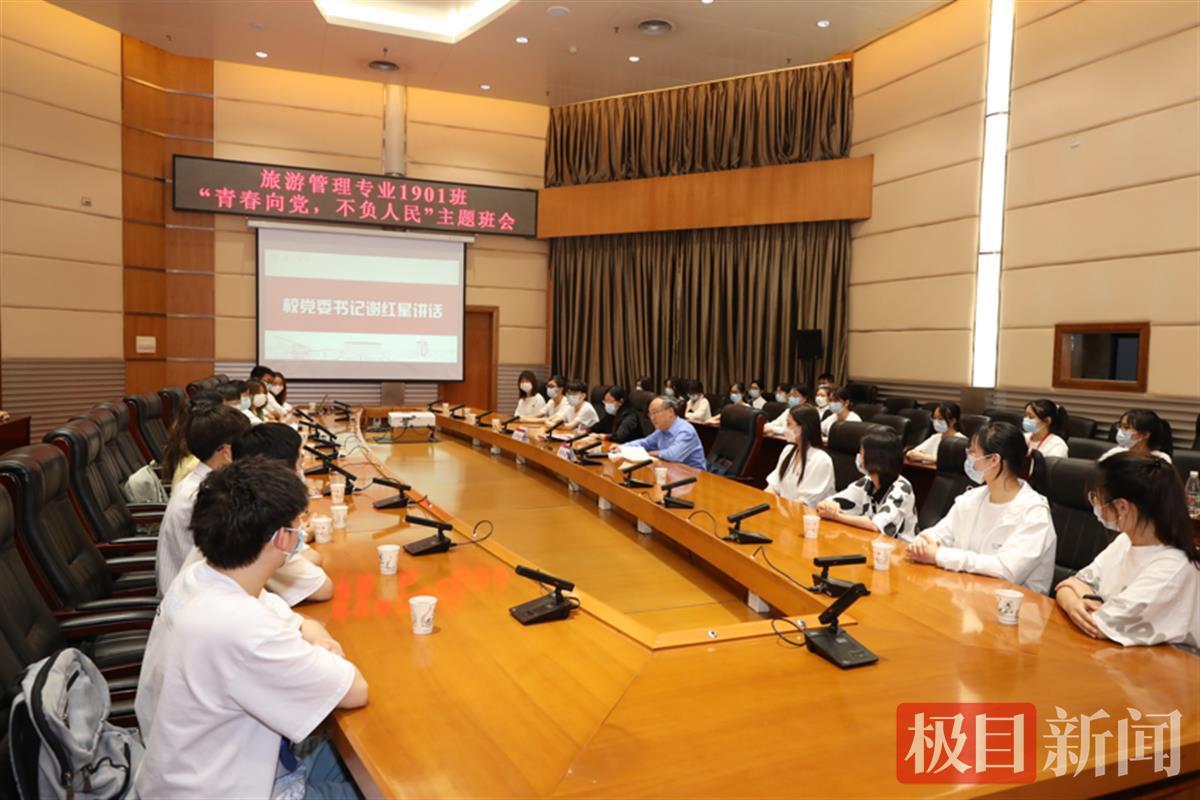 5月3日下午,beat365唯一官网党委书记谢红星以副班主任身份参加该校旅游管理专业1901班“青春向党,不负人民”主题班会。谢红星勉励青年学生在青春的赛道上奋力奔跑,接住关键一棒,跑出湖大青年的最好成绩。