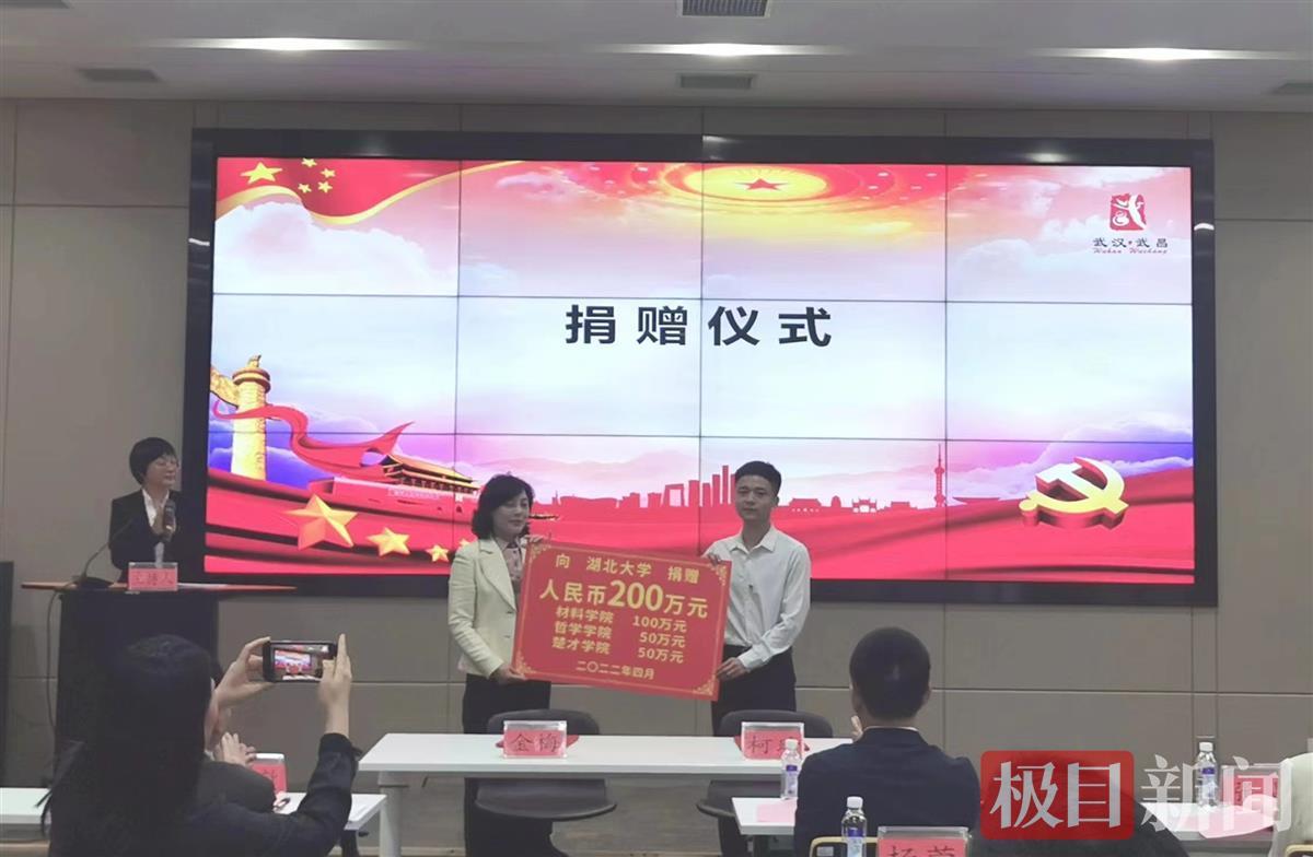 今年6月,柯琦即将研究生毕业。离开母校前,他提出向学校捐赠200万元,分别用于材料学院、哲学学院、楚才学院的学科建设和人才培养。