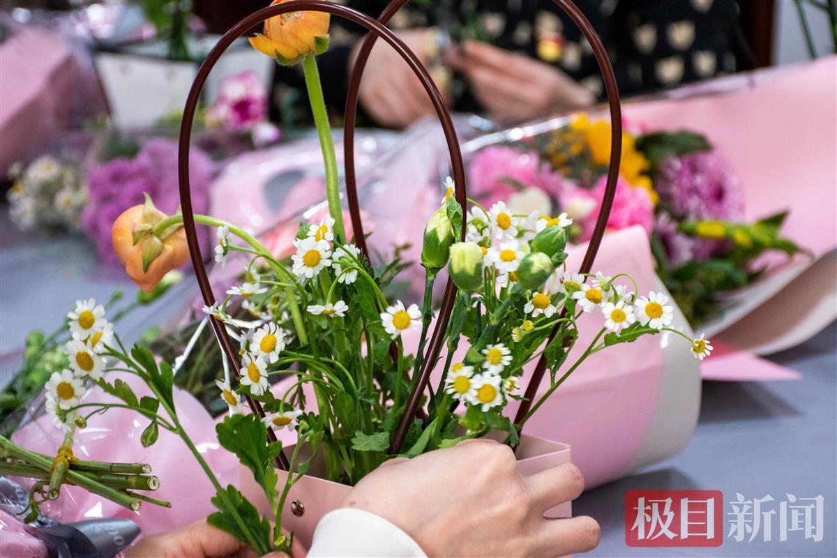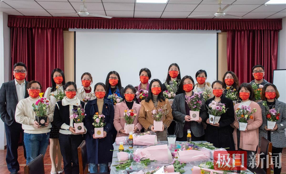 这15名女教师,有科研突出教师代表、教学突出教师、专注学生工作的辅导员。7日下午,学院早早便将现场布置成花的盛宴,静候每一位辛勤工作的女教师赴约。修剪枝叶、搭配颜色、挑选心仪的花枝,大家相互帮助提出参考意见,并拍照留恋。叶葱选择以粉色系与玫红色系的洋牡丹为主,辅以情人草和小雏菊做装饰。“粉色代表了女性的温柔,玫红色相比于粉色更显成熟稳重,主花洋牡丹是我最喜爱的一种花。”她介绍道。