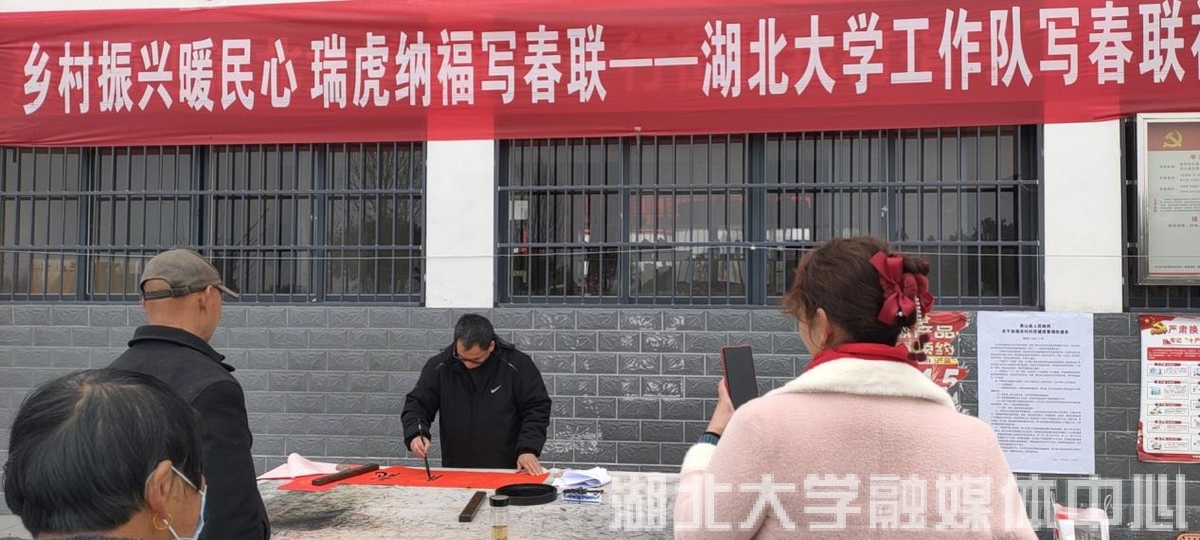 农村新报讯(通讯员余志敏、刘杨、朱祥)贴春联,过新年。1月20日,农历腊月十八,英山县石头咀镇大屋冲村文化广场人头攒动,一条“乡村振兴暖民心、瑞虎纳福写春联”的横幅前,beat365唯一官网驻村工作队队长、艺术学院教授周厚洪,正饱蘸浓墨为村民认真地书写春联。