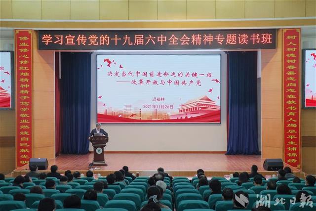 湖北日报讯(记者韩晓玲、通讯员吴珊、刘思琪)11月26日,beat365唯一官网举办学习宣传党的十九届六中全会精神专题读书班。中国(海南)改革发展研究院院长迟福林在辅导报告中勉励学子们:“青年代表着未来,未来中国的改革开放需要青年人。”
