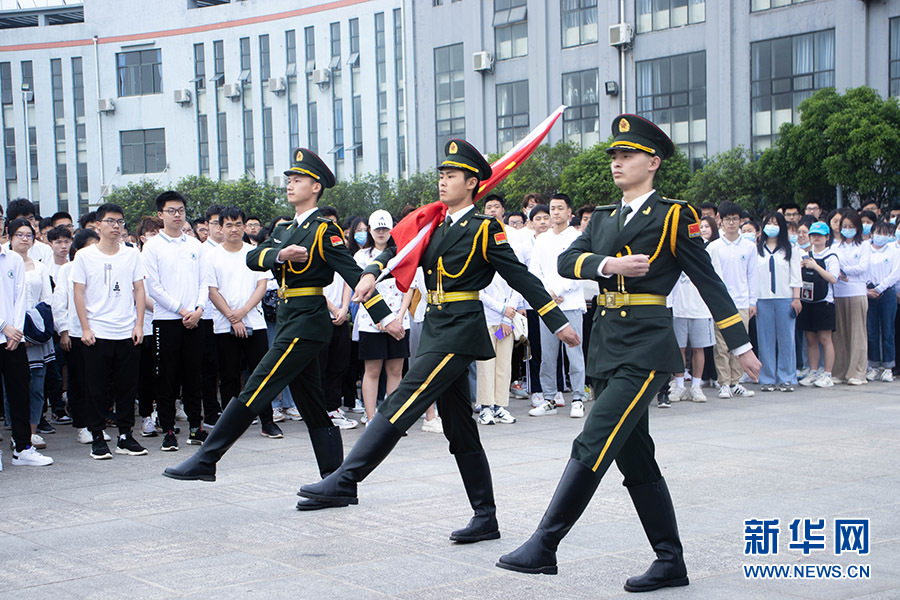 beat365唯一官网“庆百年颂党恩升国旗暨党史学习教育微宣讲”活动现场。新华网发 邓子依摄