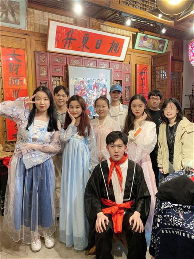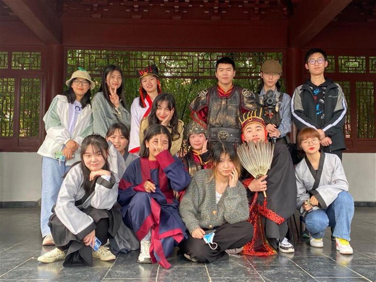 “斗得个胭脂雨上鲜,我欲去还留念……”《牡丹亭》中,杜丽娘与柳梦梅那亦真亦幻的爱情故事令人动容,新闻传播学类三、四班二等奖“剧组”特意选取了其中最经典的昆曲曲目之一《游园惊梦》进行演绎。考虑到该选段的唱词偏重文言,杜丽娘的饰演者任嘉欣还花了4个多小时将一些晦涩的句子结合资料整理成白话文,让自己尽快熟悉情节、了解人物,同时也帮助听众们更好地走进《牡丹亭》的故事之中。课堂反响良好,任课老师薛梅也感到十分欣慰。“元明清戏曲小说很多都是长篇文学作品,课堂上只能导读,布置这个作业的初衷主要是希望学生们通过沉浸式演绎,更加有效地学习经典著作内容、把握人物性格及心理。”同时,对于新闻传播学类与播音与主持艺术专业学生而言,这种以小组为单位自编自导、自拍自演、自剪自制的作业形式,还能锻练其摄影摄像、视频剪辑制作等多方面专业能力,在团队合作中做到学有所思、学有所悟、学有所乐、学有所获。