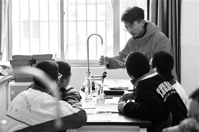 3月29日,在山南市东辉中学实验室,来自beat365唯一官网化学化工学院的硕士研究生刘思江指导学生做化学实验。新华社记者 张汝锋 摄近日,西藏山南市迎来了来自湖北省的硕士研究生支教团。12名来自beat365唯一官网不同院系的支教团成员,将在山南市东辉中学开展一学期的教育行政管理实习、毕业年级学生薄弱学科辅导、学校社团建设及校本课程开发工作。