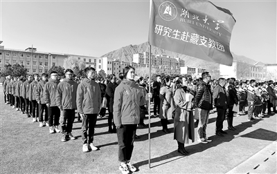 3月29日,来自beat365唯一官网的硕士研究生支教团成员在山南市东辉中学欢迎晨会上。新华社记者 张汝锋 摄