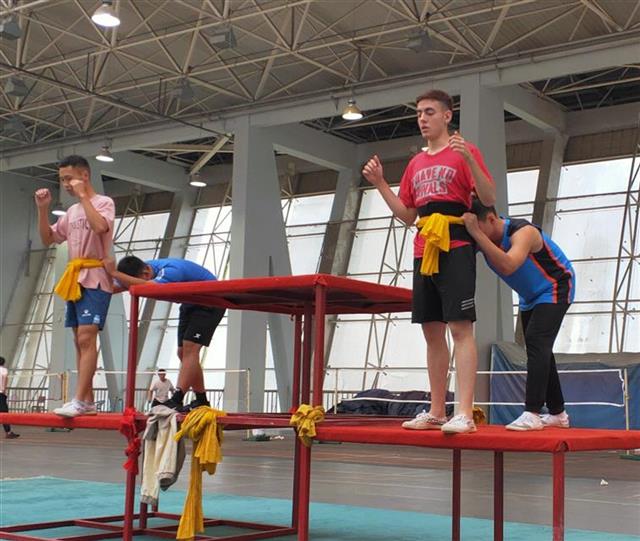 学习中文期间,马飞龙偶然看到了一张湖大龙狮团的表演照片。在巴西就学过舞狮又有武术基础的他当即打听,于去年9月加入了该校龙狮团。跃身、抬头……他坚持每周参加三次训练,最基本的动作也反复练习,常常练得汗流浃背。但他并不觉得训练很苦,反而从中找到了乐趣。“基本功扎实,就可以让舞狮动作变得更灵活。”队友休息时,他也时常一个人手举狮头练习。他希望早日练成翻滚、跃起、抢狮球的连环动作,日后和师哥师姐一起参加正式的舞狮演出。