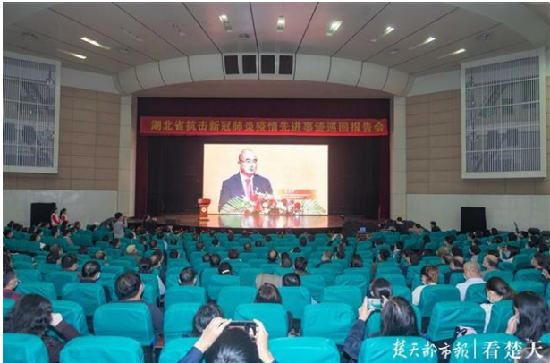 报告团六名成员分别是湖北省卫健委副主任、武汉市金银潭医院院长张定宇,华中科技大学同济医学院附属同济医院心内科副教授周宁,武汉市江夏区金口街社区卫生服务中心技士甘如意,武汉市公安局江岸分局新村街派出所副所长邵玉春,武汉市青山区工人村街青和居社区党总支书记桂小妹,中建三局安全总监、火神山医院项目指挥部工程组组长赵军。他们均是获得全国和省级表彰的先进个人,报告会现场,他们讲述着投身抗疫一线的奋斗故事和难忘经历,从救死扶伤、火神山医院建设、社区防疫等角度,真情阐释了“生命至上、举国同心、舍生忘死、尊重科学、命运与共”的伟大抗疫精神。