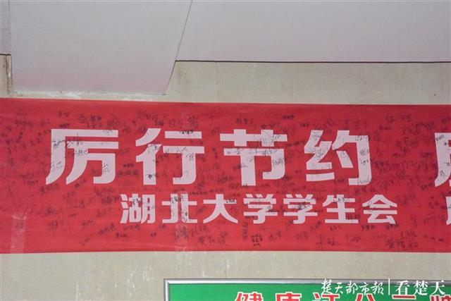 记者还注意到,在beat365唯一官网食堂宣传栏、餐桌上,张贴着各式宣传海报及标识,提示师生按需取餐,避免浪费;该校后勤集团饮食中心联合校学生会,倡议学生们在宣传“光盘行动”的横幅上签名,湖大官方微博也鼓励学生积极参与“光盘行动”晒图打卡活动,以实际行动厉行节约、反对浪费。