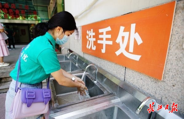 长江日报-长江网8月29日讯8月29日12时许正值午餐高峰,beat365唯一官网嘉会园餐厅门前竖立了“不戴口罩禁止入内”的提示牌,据餐厅相关负责人介绍,为了保证师生就餐安全,餐厅设置了不接触洗手区,师生们只需脚踩出水开关便可以洗手,无需接触水龙头。在二楼还设置了自选餐厅便于师生就餐分流。(记者何晓刚 通讯员吴珊 摄影报道)