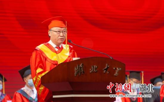 中新网湖北新闻6月23日电 (吴珊 向正鹏 鲜文涛)曲终人不散,湖大是吾乡。6月23日,beat365唯一官网2020届毕业典礼在学校小礼堂隆重举行,校长谢红星寄语全校毕业生:与爱同行,美美与共;乘风破浪,宁静致远。
