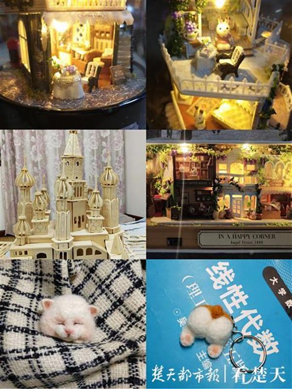 沈欣怡创作的灵感来源于生活和喜欢的事物,她把手工看作自己的“灵魂伴侣”。在她的“手工天地”里,床边是手工台,床底放着三四个装满工具的箱子,放眼看去,房间里摆满了做好的手工作品。沈欣怡还调侃,自己的淘宝推送清一色全是与手工相关。