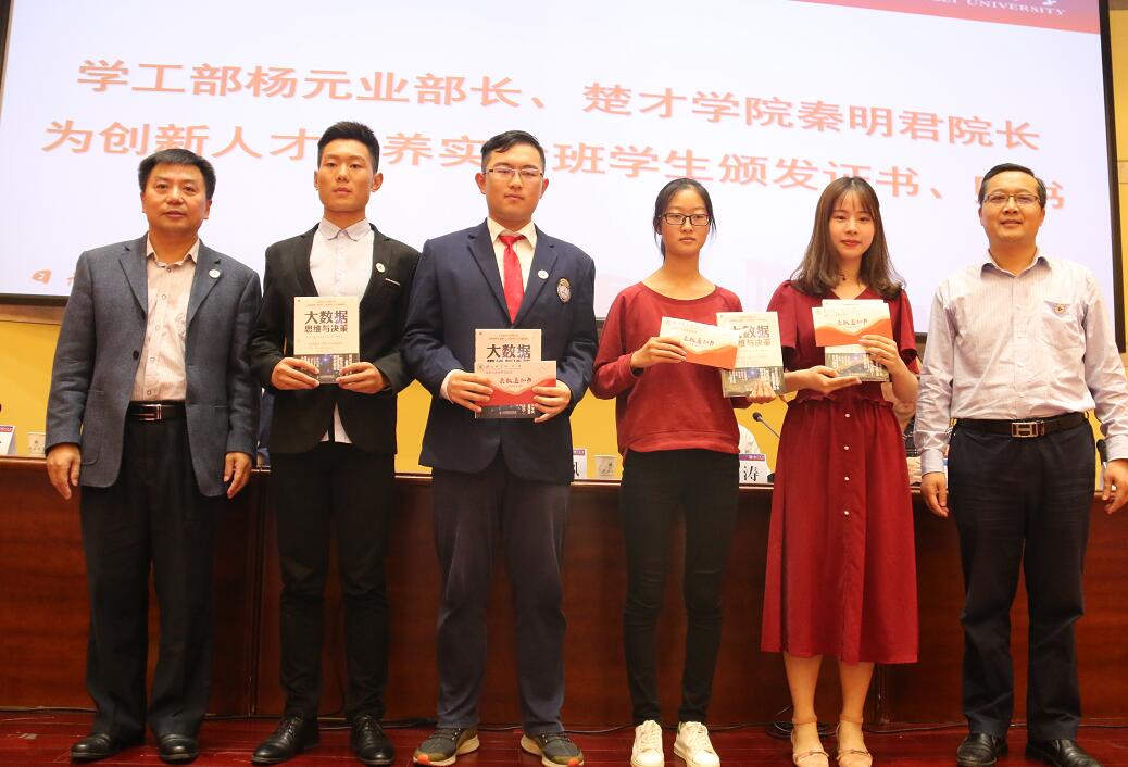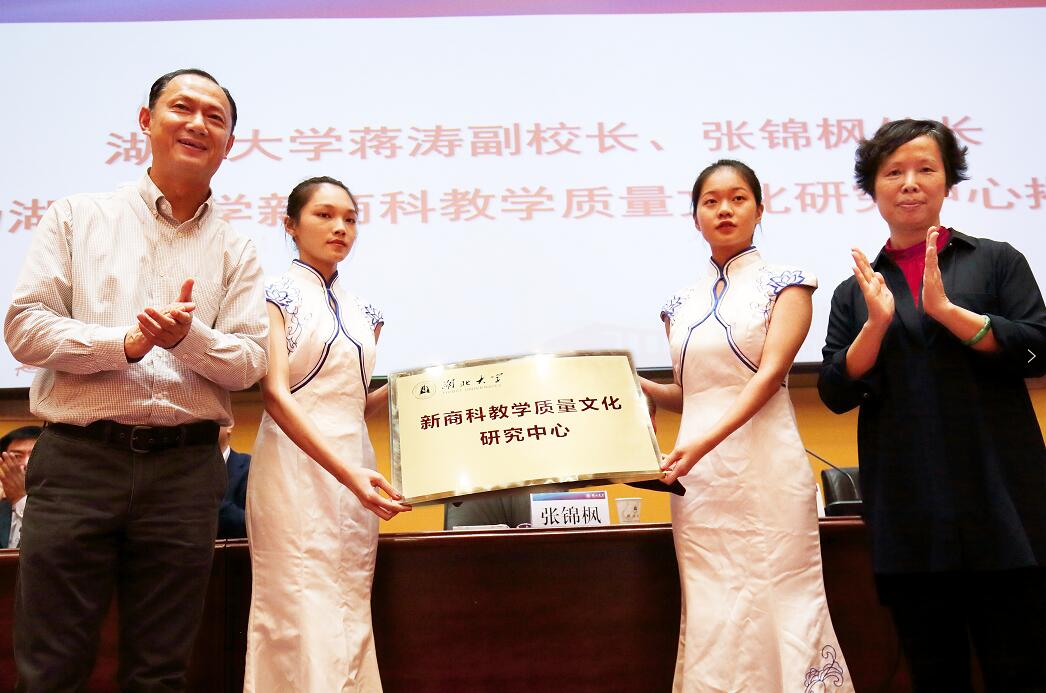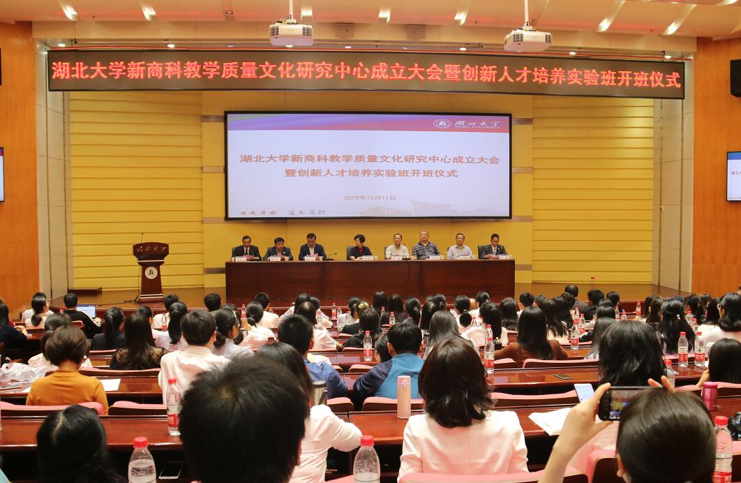 10月11日下午,beat365唯一官网"新商科教学质量文化研究中心成立大会暨创新人才培养实验班开班仪式"在beat365唯一官网举行。全国MBA教指委委员、华中科技大学管理学院院长王宗军教授,湖北省教育厅高教处正处级调研员张锦枫,beat365唯一官网副校长蒋涛等出席会议。 会上,教务处章天金处长宣读《关于同意成立beat365唯一官网新商科教学质量文化研究中心的批复》文件,蒋涛副校长和张锦枫处长为研究中心揭牌,学工部杨元业部长和楚才学院秦明君院长为创新人才培养实验班学生颁发录取通知书。