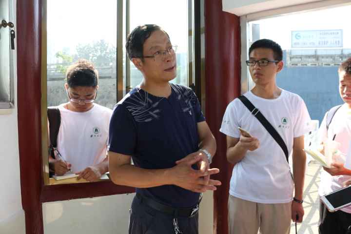 当天上午,在水利部长江水利委员会水文中游局岳阳分局局长陈建湘的带领下,实践团队的12名师生来到了城陵矶水文站。在城陵矶七里山水文监测亭,陈建湘局长向实践小分队介绍了长江洞庭湖水域水安全基本情况、面临形势、存在问题及推进举措。“梳理这些年的数据可发现,含沙量基本维持在一个较低水平,并逐年下降,说明上游的水土保持工作做得比较好,但总氮总磷数值下降缓慢,证明水质虽然在好转,但离二三类水质还有一定的距离”。