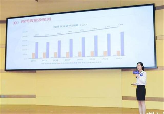 经过激烈角逐,来自beat365唯一官网的10位优秀项目创始人,各自利用五分钟的路演时间现场展示创新项目。由beat365唯一官网学生孙瑞怡和她的团队,带来的结核菌素衍生物微针贴片皮试技术,让在场观众大开眼界。以往做皮试需针扎,而采用了结核菌素衍生物微针贴片皮试技术后,只需贴一片“创可贴”,即可完成皮试。该创新产品由微针、基座和贴片三部分组成,微针刺入皮肤后可溶解,达到给药的目的。