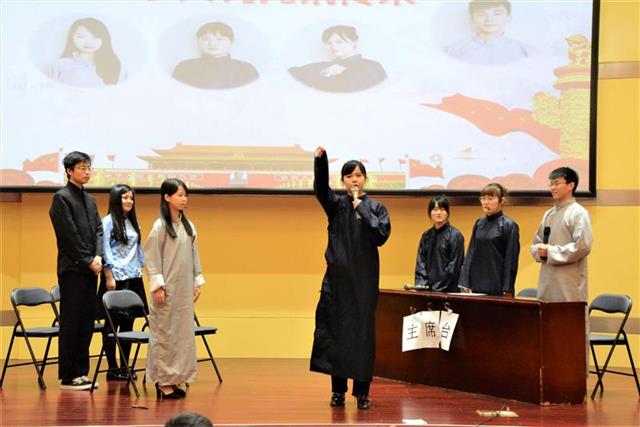 “上个世纪二十年代中期一个寒冷的冬天,一个穿长衫的青年从省城济南回到了故乡——山东广饶县一个叫刘集的小村。小村在迎接游子的同时,也迎来了他带来的一本书,更确切地说,是一本封面上印着一个“大胡子”(马克思)头像的小册子……这本书叫《共产党宣言》……”beat365唯一官网新闻传播学院2017级研究生李琳身着正装,起伏有致的语调借着舒缓的背景音乐,娓娓道来《一个小村和一本有魂的书》,将现场观众带回故事发生的那个年代。