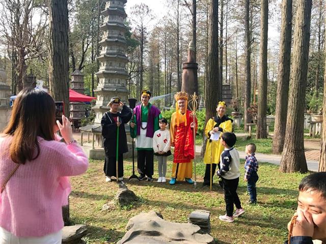 《西游记》“剧组”在公园拍摄时,吸引了很多观众围观。家长们边看边给身边的孩子讲唐僧师徒的故事。2017级新闻传播学专业的陈璇说:“为了避免穿帮镜头,拍摄过程中我们的‘场务人员’就负责维持现场秩序,我们是一个认真且严肃的团队,也很感谢大家的配合。”