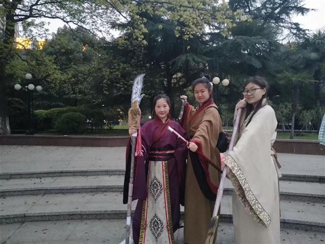 选角色、写剧本、订服装、后期制作等都要自行完成,这可让这群非表演专业的学生们犯了难。“除了服装外所有的道具都是同学们自己亲自动手做的,包括胡子、帽子、刀剑道具,在去往拍摄地时因为随身携带‘刀剑’还差点过不了地铁安检。”2017级新闻传播学专业的张映雪是《三国演义》小组的成员之一,她表示,在这个演绎的过程中,她也进一步领悟到了人物真实的性格,对经典有了别样的领悟。