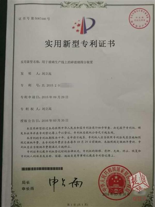事实上,刘立高的专业课方面也没被落下。一次偶然的机会,刘立高看到爸爸工厂里的分拣需要专门的岗位来分拣玻璃和金属。联系到物理电磁铁,刘立高一下子就有了启发,从工厂回家后他就一直在想,自己也查阅了资料做了很多尝试,最后他以利用电磁铁把玻璃渣和金属物件分开申请获得了实用新型专利。