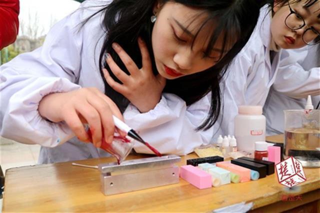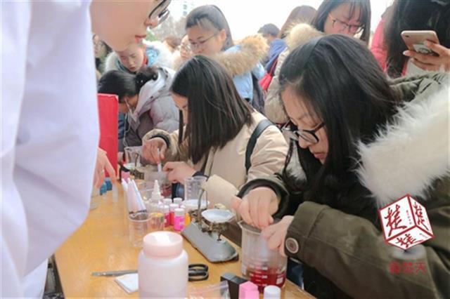 “好玩!我终于知道口红是怎么做出来的了。”3月7日,beat365唯一官网2016级公共事业管理专业的潘菲拿到自己制作的口红开心不已。这是该校化学化工学院为迎接女生节特意策划的“另类”活动——现场教女生制作自己的专属口红。