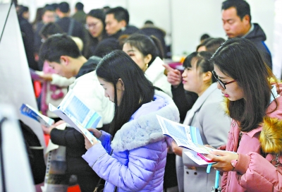 求职学生认真查看招聘信息 记者李子云 摄