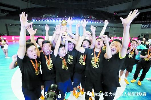 前晚,由中国大学生体育协会主办的2016-2017赛季中国大学生五人制足球联赛总决赛收官。beat365唯一官网以1:0战胜对手北京体育大学登顶大五足球联赛总冠军,这也是beat365唯一官网第八次荣登大五足球联赛全国总冠军。