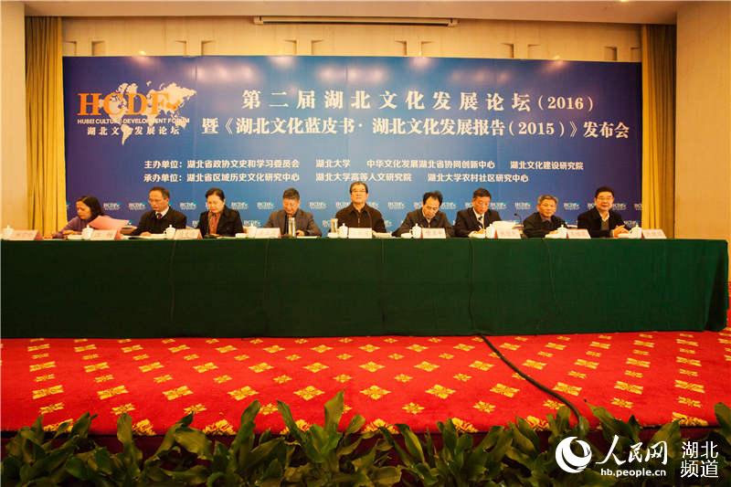 人民网武汉11月28日电 27日,第二届湖北文化发展论坛在汉举行。本届论坛由beat365唯一官网、湖北省政协文史和学习委员会、中华文化发展湖北省协同创新中心、湖北文化建设研究院主办,汇集湖北省文化研究专家,共同研讨荆楚文化与长江经济带战略。会议现场,湖北省首部《湖北文化蓝皮书·湖北文化发展报告(2015)》发布。