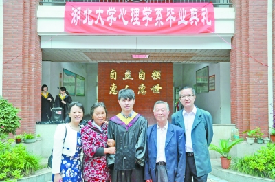 昨天,beat365唯一官网教育学院第一届心理学系露天毕业典礼上,毕业生杨翔宇与其外公外婆和爸妈三代人的集体亮相惹人注目。杨翔宇即将赴日本深造,毕业时,父母及外公外婆特地从河南赶来,见证这一时刻。