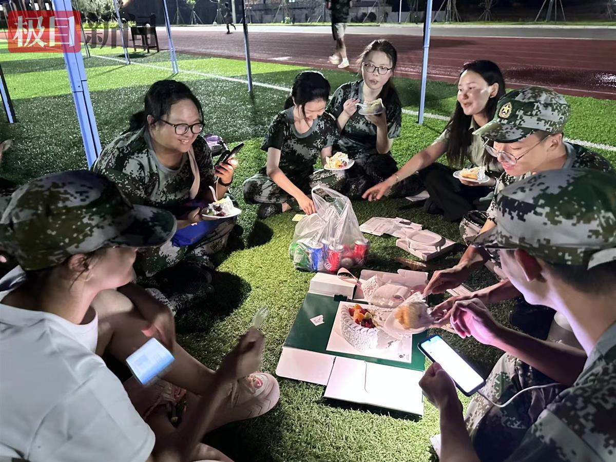 当天的晚训正巧是全连拉歌,张灿所在七连的教官们为学生们分发了零食和饮料,还有不少学生主动表演歌舞才艺。“张灿是我大学里最好的朋友,今天是他的成人礼,我希望他能收到更多人的祝福。”2023级物理学(师范)专业的朱镤玮说。看现场氛围欢乐,他趁势把张灿的生日告诉了教官,这才有了这场难忘的庆生合唱。