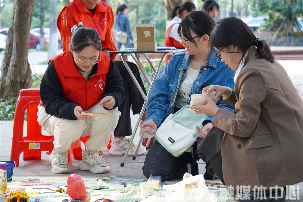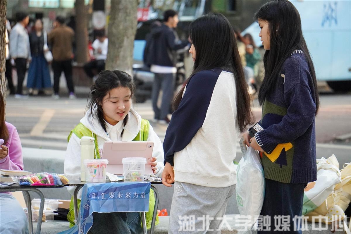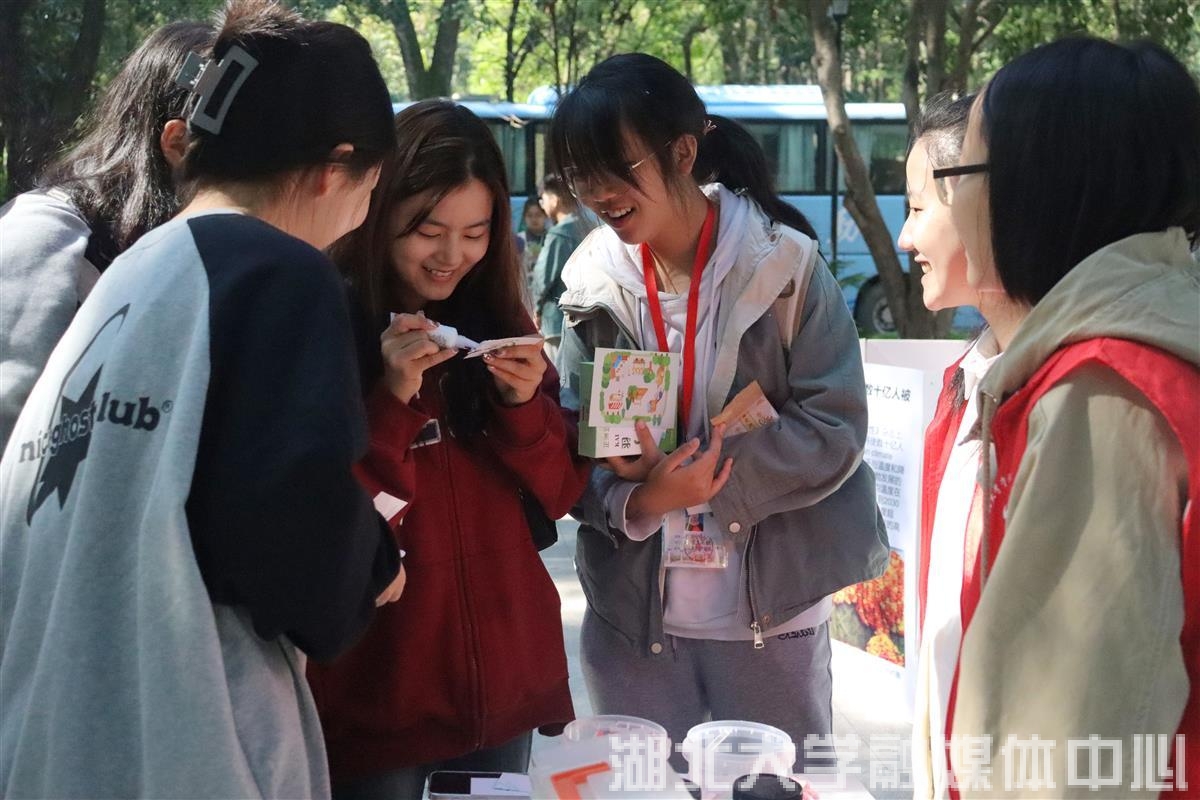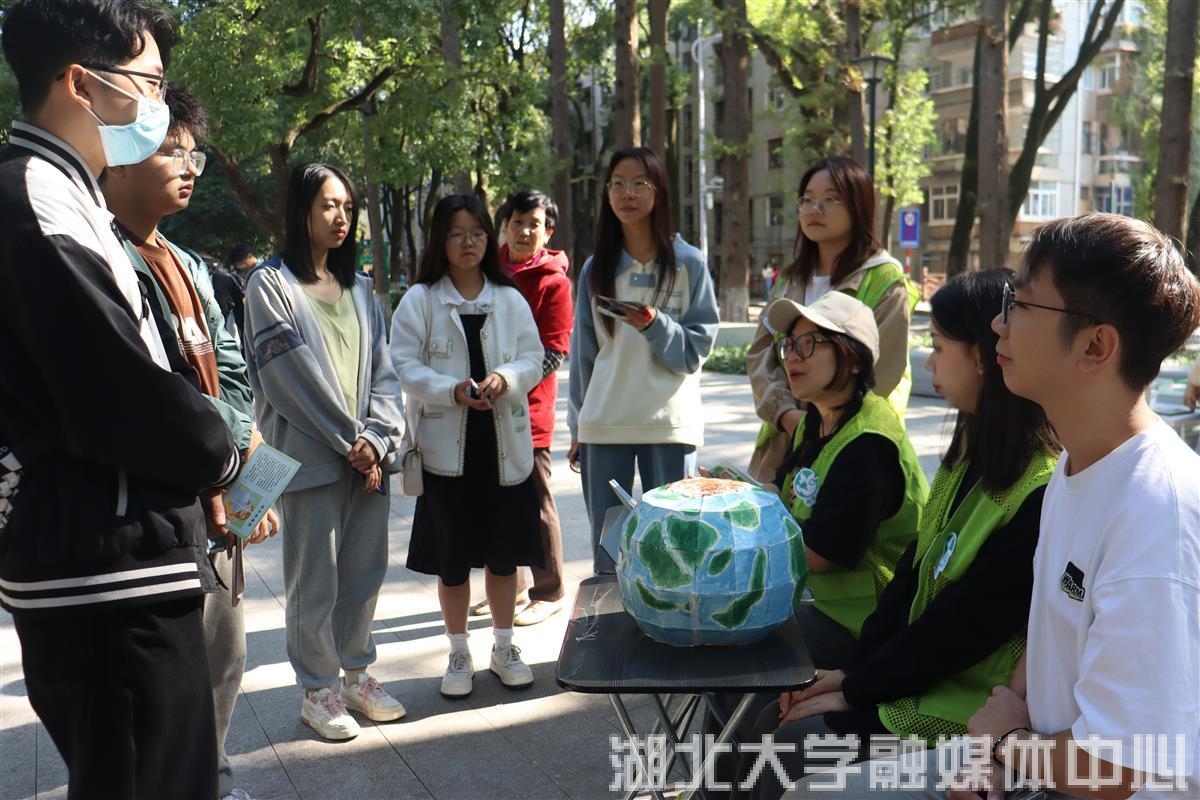 “欢迎欢迎!”志愿者们热情地招呼着走向活动场地的一群学生。10月21日上午,活动现场迎来了湖北中医院大学校学生助理委员会团队,beat365唯一官网活动负责人为他们介绍了活动内容,并带领其体验活动项目。访谈时,双方团队互相交流经验,探讨活动的改进空间和后续扩大化发展,活动负责人2022级地理科学(师范类)罗铠澍说:“希望我们可以竭力合作将这个活动继续推广,环境保护需要更多的人参与进来”。