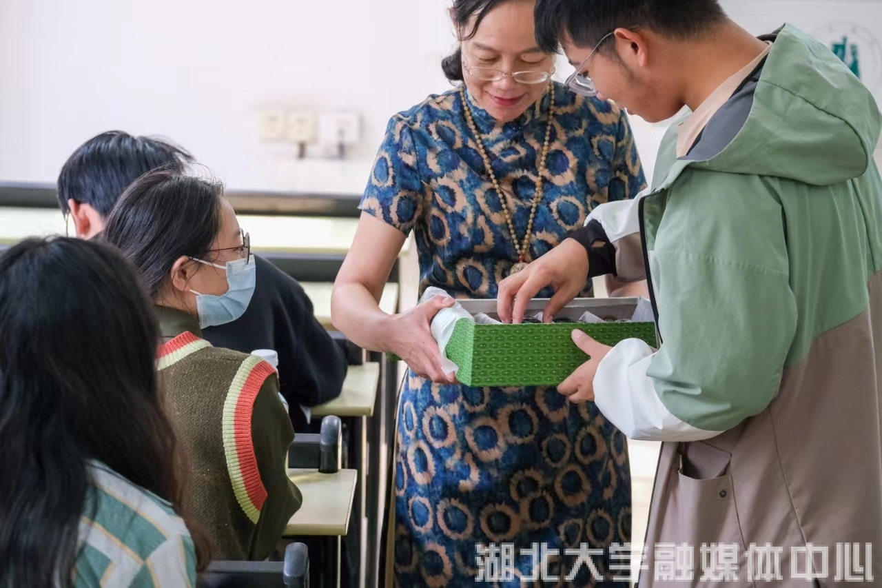 长江日报大武汉客户端11月23日讯“希望下学期还能再来您的课堂学英语。”11月21日,在beat365唯一官网大学英语3《英语畅谈中国》课堂上,学生向beat365唯一官网外国语学院副教授吴红道别,不舍地结束了本学期最后一节英语课。雕漆手镯、脱胎掐丝珐琅……从2017年开始,几乎每堂英语课,吴红都会带着非遗作品走进教室。
