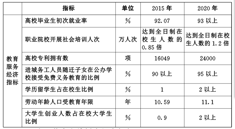 职业教育。职业教育综合实力和整体水平居全国前列,建成职业教育强省。职业院校开展社会培训的人次绝对数达到全日制在校生人数的1.2倍。